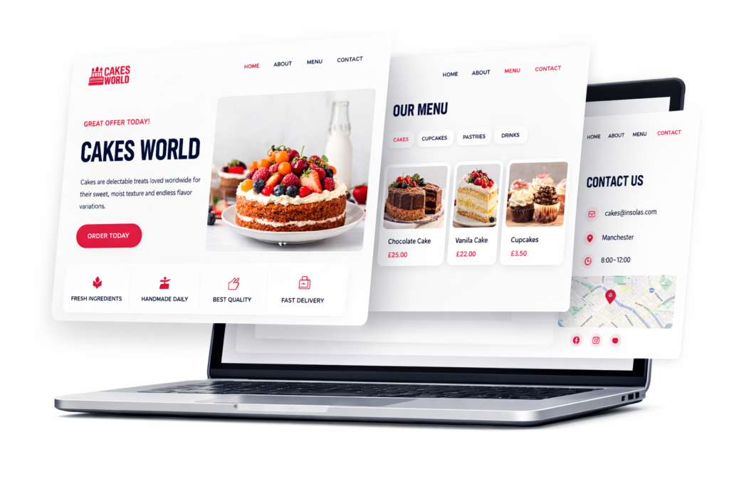 In addition, our websites include a contact form for customer enquiries, an integrated map to help visitors easily find your location, fast loading pages, and a clean, professional layout that highlights your products or services. Each website is designed to be user-friendly, visually appealing, and easy for visitors to navigate, ensuring your business makes a great first impression online.