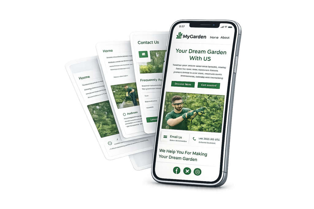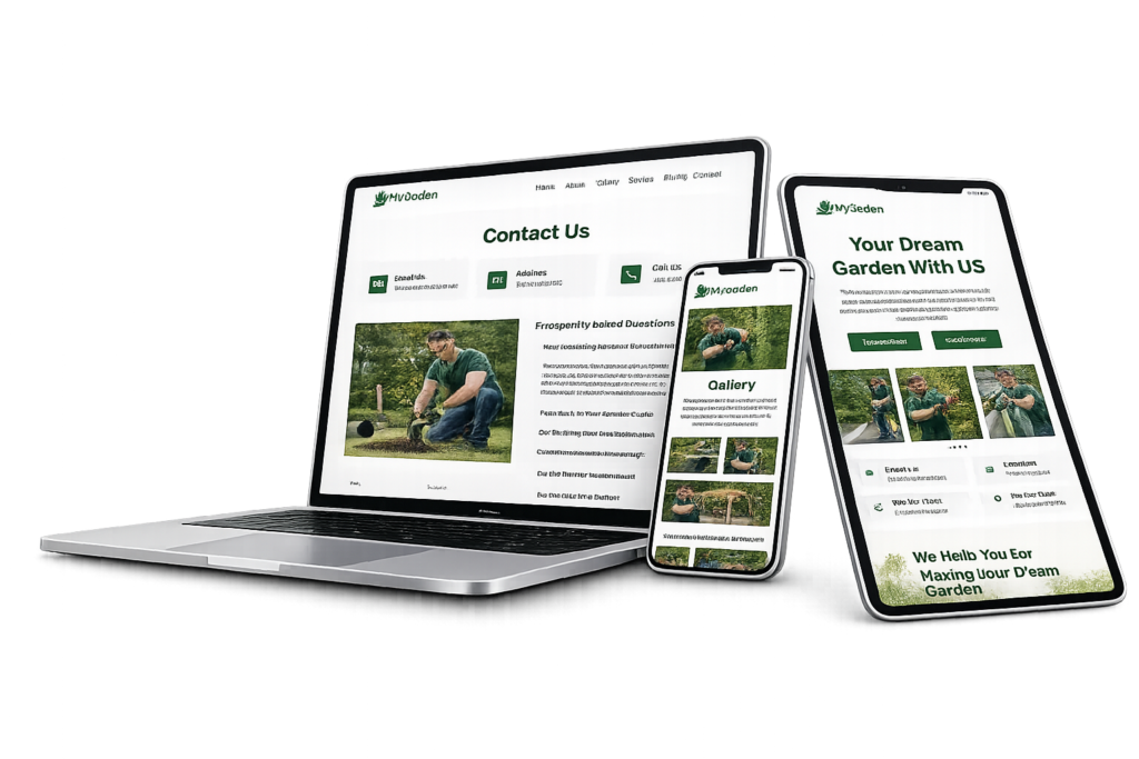 A modern and highly appealing website designed for a medium-sized gardening company, highlighting key services and important information directly from the homepage. The site provides a clear and professional layout that helps visitors quickly understand the business and its services.